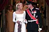 Det er 19 år siden, at kronprins Haakon af Norge giftede sig med kronprinsesse Mette-Marit. Til brylluppet var bruden iført en kjole, som hun selv havde været med til at designe. På hovedet bar hun et diadem, som var en gave fra svigerforældrene, kong Harald og dronning Sonja. (Arkivfoto) Foto: Christian Charisius/Ritzau Scanpix