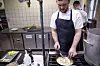En af retterne i det nye brasserie er stegt torsk, og der skal godt med smør til for at tilberede den, slår køkkenchef Nicky Arentsen fast. Foto: Nils Lund Pedersen.Nils Lund Pedersen, FT