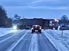 Glatte veje førte til, at to lastbiler endte på tværs af vejen syd for Nakskov. Foto: Danny Svendsen