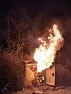 Der var godt gang i branden i transformerstationen. Foto: Lolland-Falster Brandvæsen