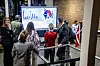 Skærmen i den store fordelingsgang på rådhuset blev opsøgt det meste af aftenen. Enkelte politikere fjernede sig kun fra den for et toiletbesøg. Foto: Ingrid Riis/ScanpixIngrid Riis