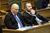 Venstres gruppeformand Søren Gade (tv.) og politiske ordfører Jakob Ellemann-Jensen lytter til spørgetime med statsministeren. Venstre vil videre med reformer, siger Jakob Ellemann-Jensen. Foto: Polfoto/Ivan Riordan Boll