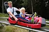 Far holder hånden på bremsen under turen med BocksBergBob. Foto: ErlebnisBocksBerg Hahnenklee GMBH
